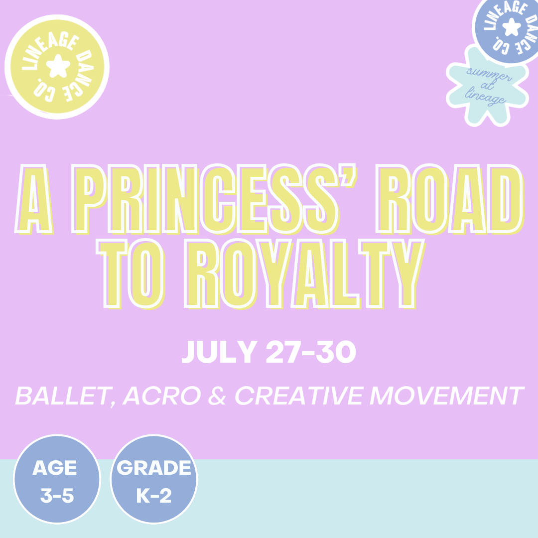 Princesses in training are invited on a magical Road to Royalty adventure. Dancers will practice royal manners, graceful movement, and even learn how to host a grand ball, all while dancing through fairy tale inspired lessons. Campers will draw inspiration from beloved princess stories and enjoy a special storytime with our friends from Storyline Bookshop. Each dancer will take home their very own princess book to remember their royal journey.