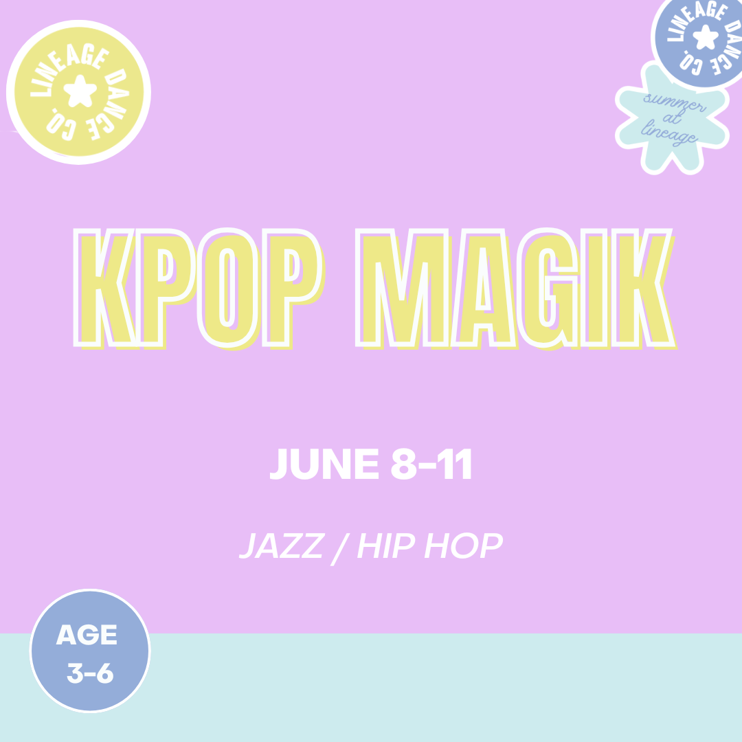 The world’s vibe is in danger—and only the K-Pop Idols can save it! In this high-energy adventure, dancers will become K-Pop stars on a world tour like no other—jet-setting to iconic cities across the globe to perform fierce and powerful routines to restore good energy! Each day, these rising idols will take on new choreography challenges and creative team missions, and unleash their creativity to bring back the fun, positivity, and sparkle to every stop on the tour. They’ll earn their way to the ultimate finale performance where they’ll celebrate their victory in true K-Pop superstar style! Inspired by the fearless energy of K-Pop Demon Hunters, this upbeat K-Pop, hip hop, and jazz dance camp will have every dancer shining like a superstar! Dancers will get to have a fun KPOP makeover on the last day!